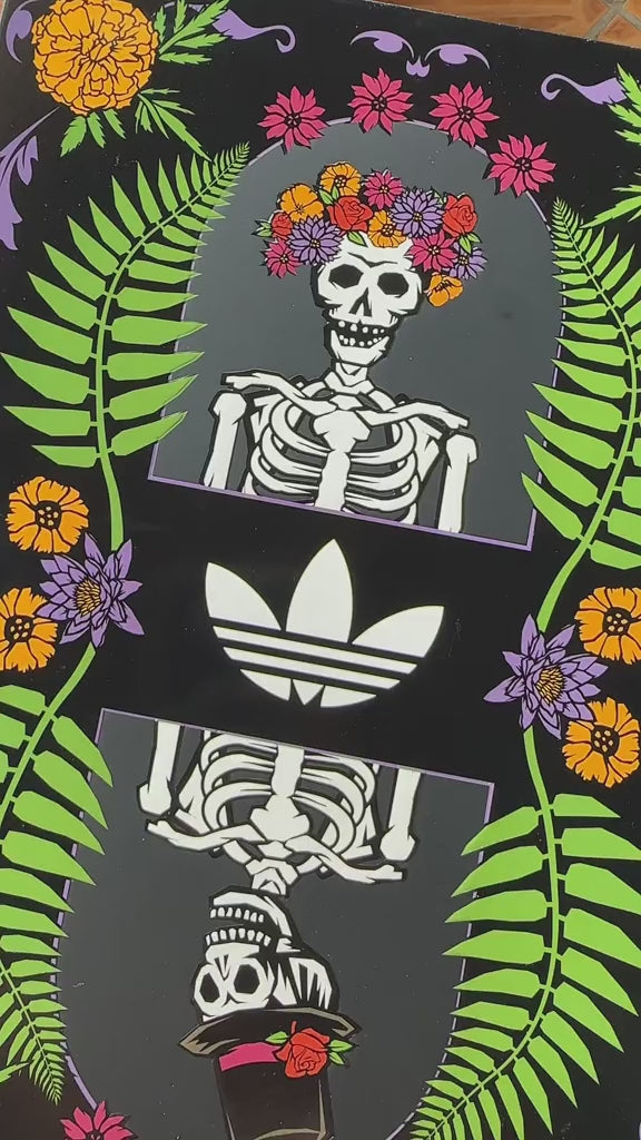 The Samba OG "Día De Los Muertos" celebrates cultural heritage with a design inspired by the traditional Mexican holiday. Featuring a white base with bold black stitching details, it captures the handcrafted aesthetic associated with the celebration. Vibrant accents in orange and yellow bring symbolic warmth, while the dark gum sole grounds the look in classic Samba style.